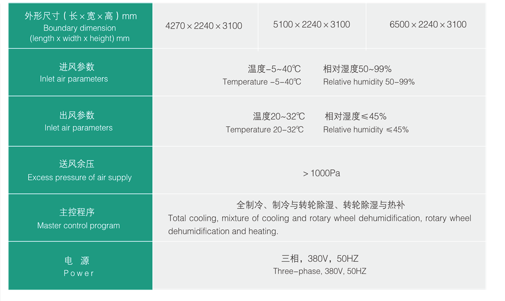 PDH系列移動(dòng)式四季除濕機(jī)在進(jìn)風(fēng)工況溫度-5~40℃,相對(duì)濕度50~99%的進(jìn)風(fēng)條件下,出風(fēng)均能達(dá)20~32℃,相對(duì)濕度≤45%的技術(shù)指標(biāo),機(jī)組的冷凝器采用風(fēng)冷式銅管鋁片機(jī)組設(shè)有四種工作狀態(tài)可供用戶選擇試用。分別為全制冷、制冷與轉(zhuǎn)輪混合、全轉(zhuǎn)輪和轉(zhuǎn)輪與加熱混合四種工作狀態(tài)。機(jī)組采用PLC自動(dòng)程序運(yùn)行,滿足各工況運(yùn)行要求